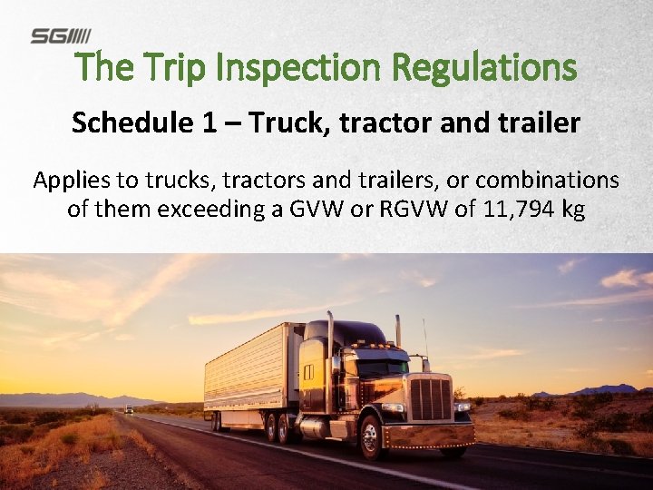 A driver is required to complete a vehicle inspection every 24-hour period and monitor the vehicle's condition throughout the trip. A driver is not permitted to drive a truck unless they or another person, within the previous 24 hours, have conducted a Schedule 1 inspection of the vehicle and completed an inspection report.